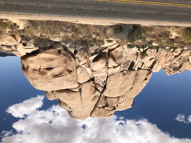 It’s Salvador Dali live. An afternoon sojourn entranced. My eyes. My body. My psyche. The 95-degree dry heat rendered me sluggish, dazed, dripping. The vista was starkly strange . . .a colossal natural sculpture garden of jumbled globs of stacked granite boulders of infinite sizes and shapes peppered amidst forests of tortured trees with spindly twisted and gnarled branches shooting up from expansive endless stretches of sandy earth.